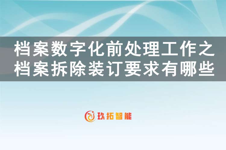 以上是档案数字化加工软件厂家玖拓智能关于“档案数字化前处理工作之档案拆除装订要求有哪些”的简要介绍,如需要了解完整的档案数字化建设方案或档案数字化扫描相关的档案科普知识,请浏览玖拓智能官网文章。