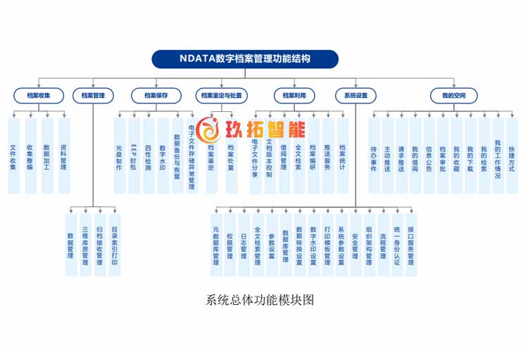 国企数字档案管理系统平台总体分为档案收集、档案管理、档案保管、档案利用、系统设置五大功能群。满足国有企业对电子档案和电子文档资源的收集、整理、保存、鉴定、统计、利用全过程的管理需求。可安全有效地管理和利用各类档案数据,保证单位电子档案统一规范的管理,确保电子档案的真实、完整、安全。